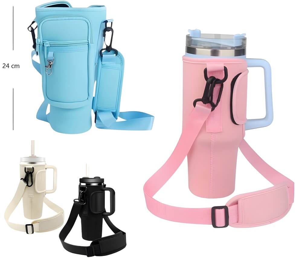 PORTA BOTELLA TERMICA CORREA Y BOLSILLOS